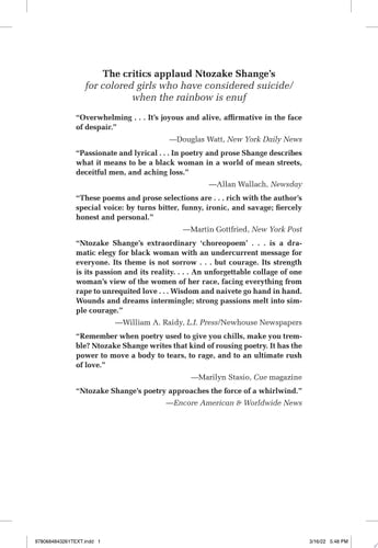 Title: For Colored Girls Who Have Considered Suicide When the Rainbow Is Enuf